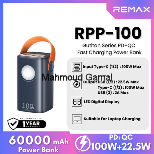 استخدام باور بانك REMAX RPP-100 Gutitan Series 60000mAh